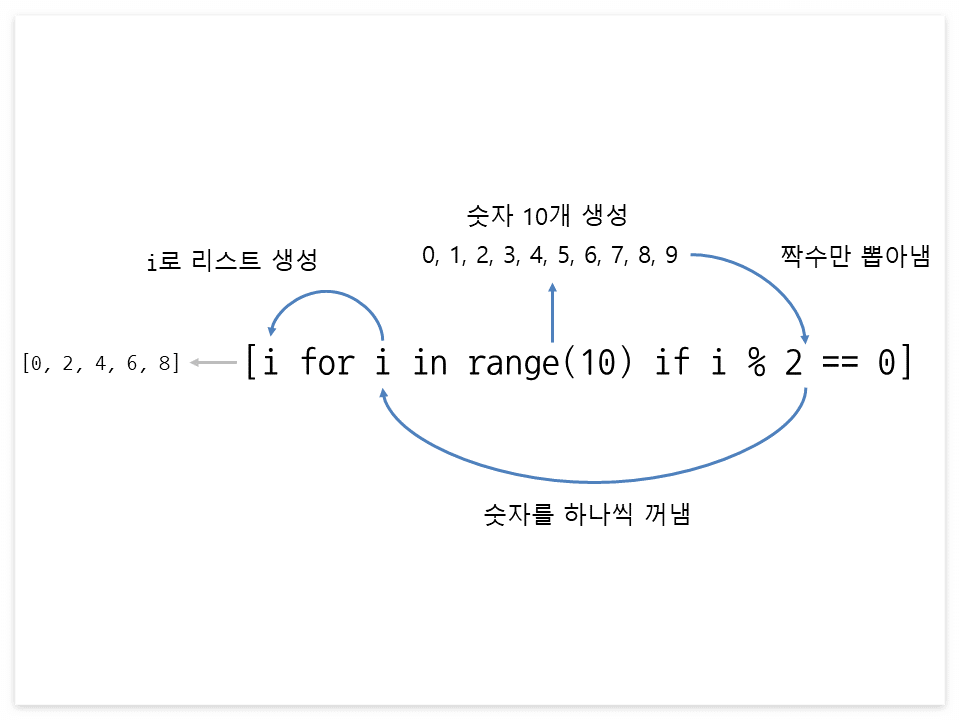 - 파이썬에서 리스트를 만들 때는 리스트 컴프리헨션[list comprehension]을 자주 쓰게 된다.